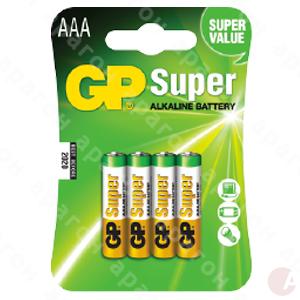 Батарейки GP LR03 Super. Щелочные цилиндрические в металлической оболочке. Без возможности перезарядки. Для питания приборов повседневного использования. В упаковке 4 шт.