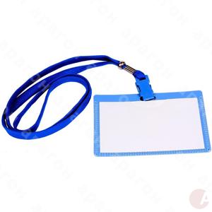 Бейдж горизонтальный, пластиковый, на твердой основе. Крепление – шнурок с зажимом. Размер - 90х55 мм.