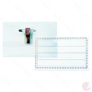 Бейдж горизонтальный, пластиковый. Крепление - металлическая прищепка и булавка. Размер - 55х90 мм.