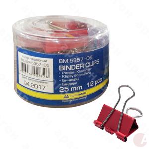 Биндер-зажим для бумаги 25 мм. Материал - металл. Цвет - красный.