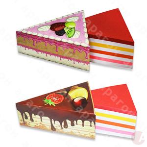 Бумага для заметок NoteCake - это блок из 400 листов офсетной бумаги 80 г/м2, 5 цветов, проклеенных по торцу, размером 100*70*40 мм. Каждый блок упакован в оригинальную картонную коробочку стилизованную под кусочек торта.