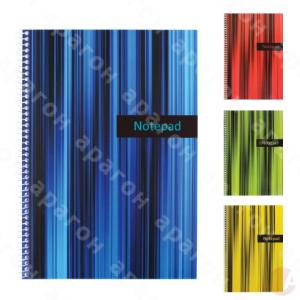 Блокнот "Аккорд" на 96 листов (клетка). Картонная полноцветная печать. Крепление бумажного блока - боковая спираль. Бумага белая офсетная. Формат - А5. Цвет обложки - ассорти.