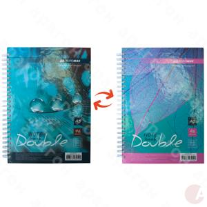 Блокнот Double на 96 листов (клетка). Твердая ламинированная обложка. Двухсторонняя обложка выгодно выделяется и очень удобна для ведения записей с любой стороны книг. Крепление бумажного блока - боковая спираль. Плотность офсетной бумаги- 55 г/м2. Формат - А5.