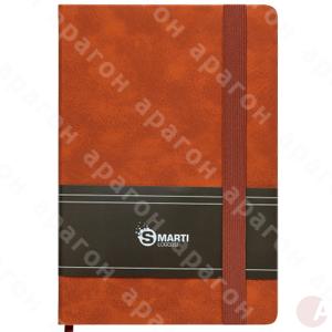 Блокнот деловой SMARTI LOGO2U на 96 листов (клетка). Твердая обложка из искусственной кожи на резинке. Форзацы из дизайнерской бумаги. Кремовый блок. Плотность офсетной бумаги 70 г / м2. Закругленные углы. Ляссе в цвет обложки. Индивидуальная упаковка: пакет. Формат - А5. Цвет - коричневый.