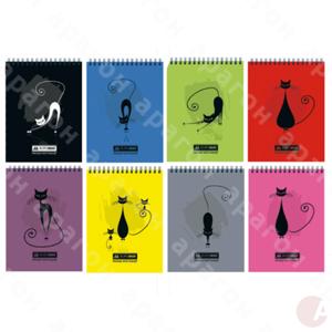 Блокнот "Cat" на 48 листов (клетка). Крепление бумажного блока - верхняя спираль. Формат - А6. Цвет - ассорти.