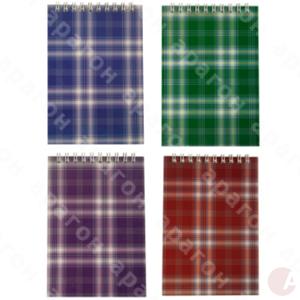 Блокнот "Шотландка" на 48 листов (клетка). Крепление бумажного блока - верхняя спираль. Формат - А6. Цвет - ассорти.