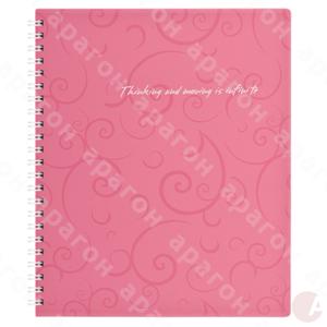 Блокнот для записей "Barocco" розовый на 80 листов (клетка). Переплет - металлическая боковая пружина. Обложка - фактурный пластик, толщина 500 мкм. Офсетная бумага, плотность - 60 г/м2. Формат - В5.
