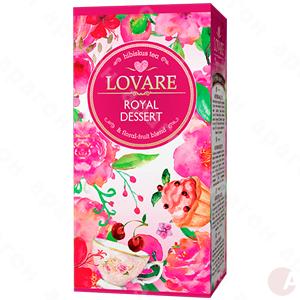 Чай LOVARE Королевский десерт. Пакетованный в индивидуальных конвертах (24 пакетика по 2 г). Состав: каркаде, вишня, рябина, ананас, шиповник, клубника, цедра апельсина, лепестки розы. лепестки календулы.