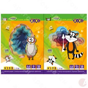 Набор цветной бумаги ZB.1900. Внаборе 18 листов в 9 цветах на скобе. Цвета: красный, оранжевый, желтый, зеленый, голубой, синий, фиолетовый, коричневый, черный. Бумага газетная плотностью 45 г/м2. Обложка из плотного картона 230 г/м2.