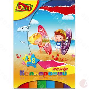 Бумага цветная офсетная (8 цветов). Мелованная обложка. Формат – А4. Плотность бумаги – 65 г/м2. В папке 8 листов.