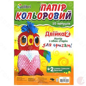 Цветная бумага "Двойка" двухсторонняя 10 листов. Подходит для оригами. Формат - А4.