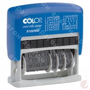 Мини-датер пластиковый c 12 бухгалтерскими терминами. В комплекте встроенная синяя подушка, которую можно заменить на цветную (красную, зеленую, фиолетовую, черную) или на бесцветную (для самостоятельного окрашивания). Термин и дата устанавливаются с помощью колесиков. Оттиск однострочный. Украинский шрифт. Высота шрифта – 4 мм.