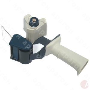 Диспенсер для упаковочного скотча. Пружинный механизм натяжения ленты. Металлический нож. Усиленная конструкция. Эргономичная ручка. Подходит для скотча шириной до 50мм.