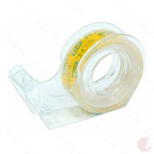 Диспенсер малый со скотчем 12 мм х 10м. Пластиковый прозрачный корпус.