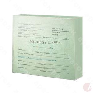 Доверенность. Бумага офсетная. Формат – А5. Альбомная ориентация. В блоке 50 листов.