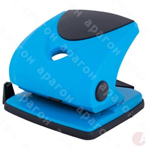 Дырокол с ограничительной линейкой и фиксатором. Пластиковый корпус. Эргономичная резиновая вставка. Два способа открытия контейнера. Пробивает до 30 листов.