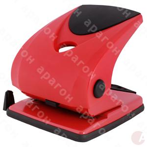 Дырокол с фиксатором и ограничительной линейкой. Пластиковый корпус. Эргономичная резиновая вставка. Два способа открытия контейнера. Пробивает до 40 листов.