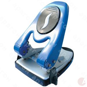 Дырокол большой с ограничительной линейкой и фиксатором. Металлический корпус. Два способа открытия контейнера. Специальная подошва не скользит по поверхности и не царапает ее. Расстояние между пробитыми отверстиями 80 мм. Диаметр пробитого отверстия - 5,5 мм. Пробивает до 60 листов.