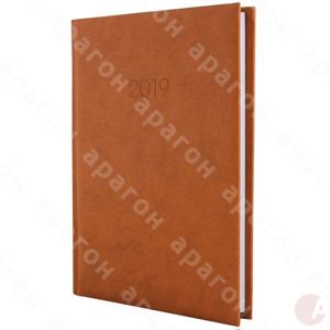 Ежедневник «Algora 2019» датированный коричневый на 352 страниц. Матовая шелковистая поверхность. Материал обложки устойчив к незначительным механический повреждениям. Одна страница – один рабочий день. Суббота и воскресенье на одной странице. Украинский язык, дополнительно русский и английский. Телефонная книга. Шелковое ляссе. Информационный блок на 9 страниц. На форзацах – карта Украины и карта Европы. Бумажный блок белого цвета. Плотность бумаги – 65 г/м2. Формат – А5.