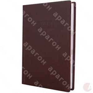 Ежедневник «Nebraska 2019» датированный темно-коричневый на 352 страниц. Обложка из искусственной кожи с матовой бархатистой поверхностью. Одна страница – один рабочий день. Суббота и воскресенье на одной странице. Украинский язык, дополнительно русский и английский. Угол отрывной, перфорация по кругу. Шелковое ляссе. На полях страниц – регистры. Информационный блок на 9 страниц. На форзацах – карта Украины и карта Европы. Бумажный блок белого цвета. Плотность бумаги – 65 г/м2. Формат – А5.