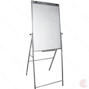 Флипчарт с магнитно-маркерной поверхностью для письма сухостираемыми маркерами и прикрепления информации магнитами. На четырёх ножках с держателем для бумажных блоков. Ножки не регулируются. Крепление блока – винтовое. Полочка для маркеров. Размер – 65х100 см.