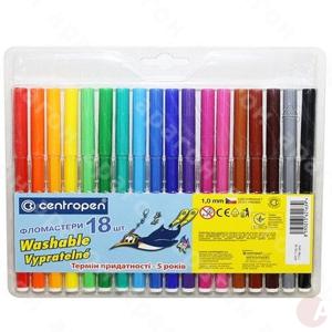 Фломастеры с легкоотстирываемыми чернилами на водной основе. Пишущий узел устойчив к вдавливанию. Вентилируемый колпачок. Корпус из полипропилена. Ширина следа – 1-2 мм. Срок хранения — 5 лет. В упаковке с подвесом 18 фломастеров.