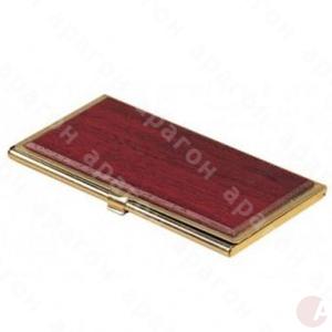 Футляр для визиток металлический. Декор из натурального дерева. Размер: 94х59х8мм.