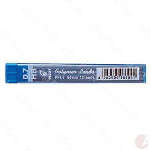 Грифель для механических карандашей. Полимерное покрытие обеспечивает минимальное пылеобразование и повышенную прочность на излом. Твердость – 2В. Стержень – 0,7 мм. Длина – 60 мм. В пластиковом футляре 12 шт.