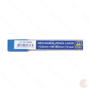 Стержни к механическому карандашу HB 0.5мм. Длина стержня 60 мм. Грифеля упакованы в пластиковый контейнер по 12шт.