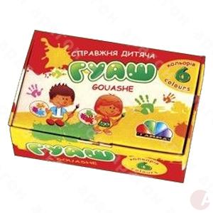Гуашь оформительская для детского творчества. В картонной коробке в пластиковых баночках 6 цветов по 25 мл.