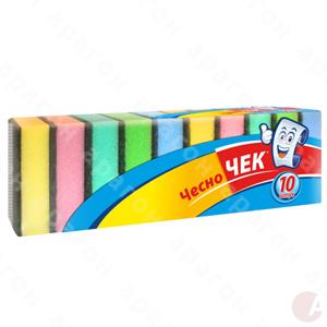 Губки кухонные "ЧесноЧек". Предназначены для очистки загрязненных поверхностей (посуда). Используются совместно с моющими средствами или без них. В упаковке 10 шт.