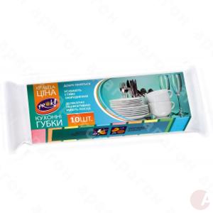 Губки кухонные Prok. Предназначены для мытья посуды. Размер - 80х50х25 мм. Поверхность ровная. В упаковке 10 шт.