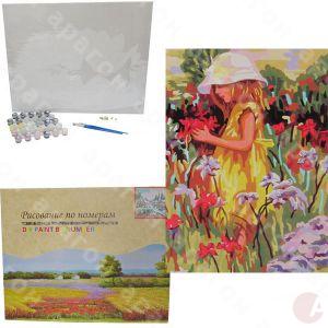 Раскраска по номерам (холст на раме с красками и кистями) "На цветочной поляне". Размер холста - 40х50 см.
