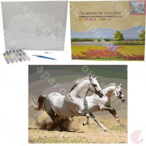 Раскраска по номерам (холст на раме с красками и кистями) "Белые лошади". Размер холста - 40х50 см.