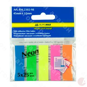 Индикаторы пластиковые прямоугольные. Яркие неоновые цвета. РР-упаковка c подвесом. Размер – 12х45 мм (5 цветов по 25 листов).