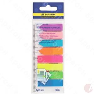 Индикаторы пластиковые прямоугольные. Яркие неоновые цвета. РР-упаковка c подвесом. Размер – 12х45 мм (8 цветов по 25 листов).