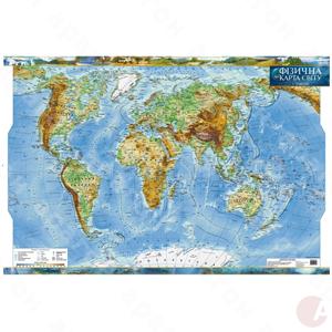 Физическая карта мира. Стенно-настольная. Материал – картон, ламинация. Масштаб – 1:35 000 000. Размер – 98х68 см.