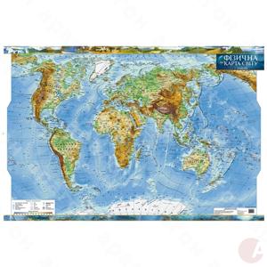Общегеографическая карта мира. Настенная. Материал – картон, ламинация, планки. Масштаб – 35 000 000. Размер – 98х68 см.