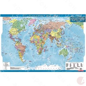 Политическая карта мира. Настенная. Ламинированная. Масштаб – 1:35 000 000. Размер – 98х68 см.
