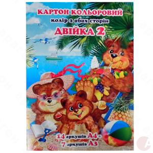 Картон "Двойка" двухсторонний 14 листов. Формат - А4.