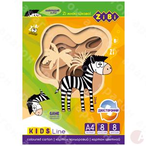 Набор цветного картона ZiBi. Вид картона - целлюлозный, окрашенный с обеих сторон в один цвет. 8 листов, 8 цветов. Формат А4. Плотность - 180 г / м2. Обложка - полноцветная обложка- «рукав» с мелованной бумаги. Дополнительный бонус: творческая детская игра для вырезания на задней стороне обложки.