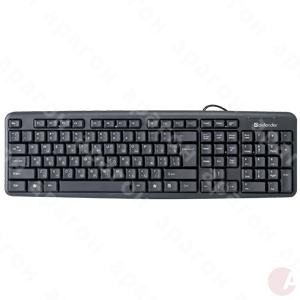Проводная клавиатура Defender Element HB-520. Три кнопки управления питанием компьютера. Прочная усиленная конструкция продлевает срок службы клавиатуры. Полноразмерная раскладка клавиш. Угол наклона клавиатуры регулируется с помощью ножек. Легкая установка. Для работы не нужны драйверы. Плоская конструкция корпуса. Интерфейс подключения - USB. Длина кабеля - 1,5 м. Цвет языка основной раскладки - белый. Тип клавиатуры - мембранная. ROHS / CЕ - нет.