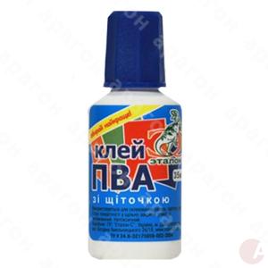 Клей ПВА (поливинилацетат) с кисточкой. Предназначен для склеивания бумаги, картона, дерева. Срок годности неограничен. Объем - 35 мл.