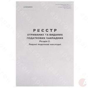 Книга регистрации выданных налоговых накладных на 50 листов. Бумага офсетная. Формат – А4. Книжная ориентация. Крепление блока – скоба.