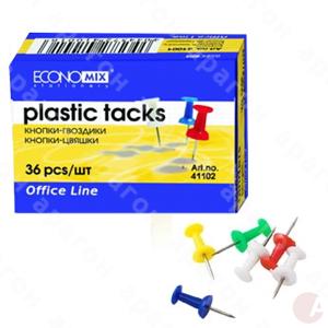 Кнопки-гвоздики металлические цветные с пластиковой шляпкой. В картонной упаковке 36 шт.