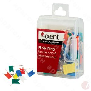 Кнопки-цвяшки Axent 4215-A мають форму "прапорців". В пластиковому контейнері, кольорові. В упаковці 30 штук.