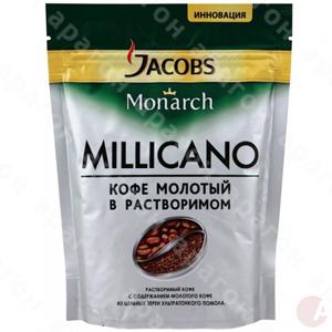 Кофе Jacobs Monarch Millicano натуральный растворимый сублимированный с добавлением кофе натурального жареного молотого. Вес - 250 г.