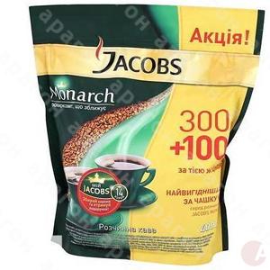 Кофе растворимый сублимированный Jacobs Monarch высшего качества в мягкой вакуумной упаковке. Обладает тонким вкусом и изысканным ароматом отборных кофейных зерен. Рецепт приготовления этого напитка прост — достаточно положить в чашку одну чайную ложку кофе и добавить горячую, но не кипящую воду. Растворимый кофе Jacobs Monarch поставляется в упаковке с надежной застежкой, вес — 400 г. Срок годности: 24 мес. Условия хранения: в сухом прохладном месте при температуре 20, при влажности воздуха не более 75%.