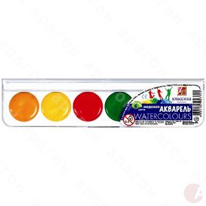 Краски акварельные «Классика» медовые полусухие. Изготовлены на основе органических пигментов и натурального связующего с добавлением пчелиного мёда, находятся в пластмассовой упаковке с прозрачной крышкой. Акварель предназначена для детского творчества и различных живописных работ. Отличается следующими свойствами: прозрачность красок, яркость и чистота цвета, отличная разносимость и размываемость. В пластиковой коробке 6 цветов.