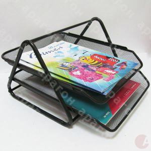 Лоток горизонтальный двойной металлический. Цвет - черный.